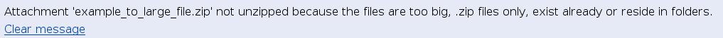 If the resulting unpacked files exceed the limit of filespace for attachments, you get this warning.